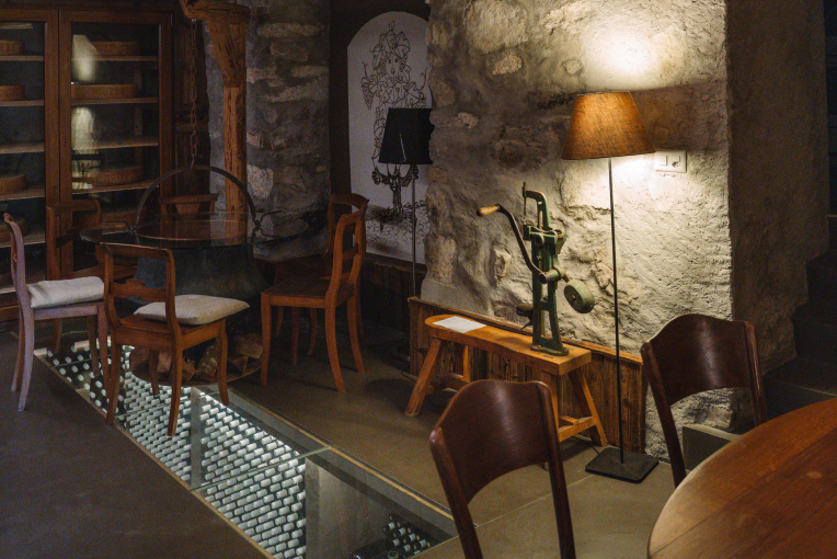 Véritable institution dans toute maison vaudoise digne de ce nom, le carnotzet occupe une place centrale dans notre domaine. Ses murs en pierre, épais d’un mètre, remontent aux années 1780, à une époque où cet espace n’était encore qu’une grange. À la fin du XIXe siècle, la grange fut transformée en maison d’habitation et abritait autrefois un pressoir à palanche, aujourd’hui disparu. C’est dans ce cadre chaleureux que la famille Jomini vous ouvre ses portes pour des expériences de dégustation uniques, alliant plaisir, convivialité et découverte.